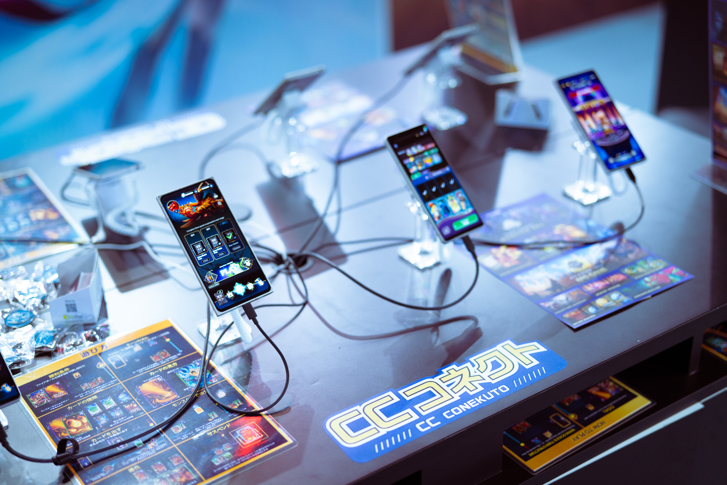 当社の商流ネットワークを活かして 株式会社CCコネクト 様より中古スマートフォンを、株式会社マーケットエンタープライズ 様より中古ゲーミングPCをご提供いただき、3社のロゴを掲出したブースを構成いたしました。来場者には、7Didital Labs様開発の新作ゲーム”BloodLoop”のデモプレイを通じて、中古デバイスでも最新ゲームが遊べるという実用性を体感していただきました。